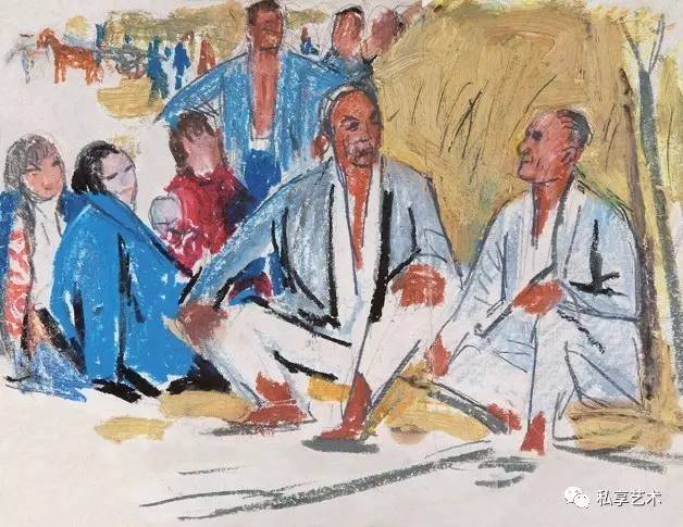 苏天赐 乡村即景 20×26cm 油画棒 中国美术馆藏