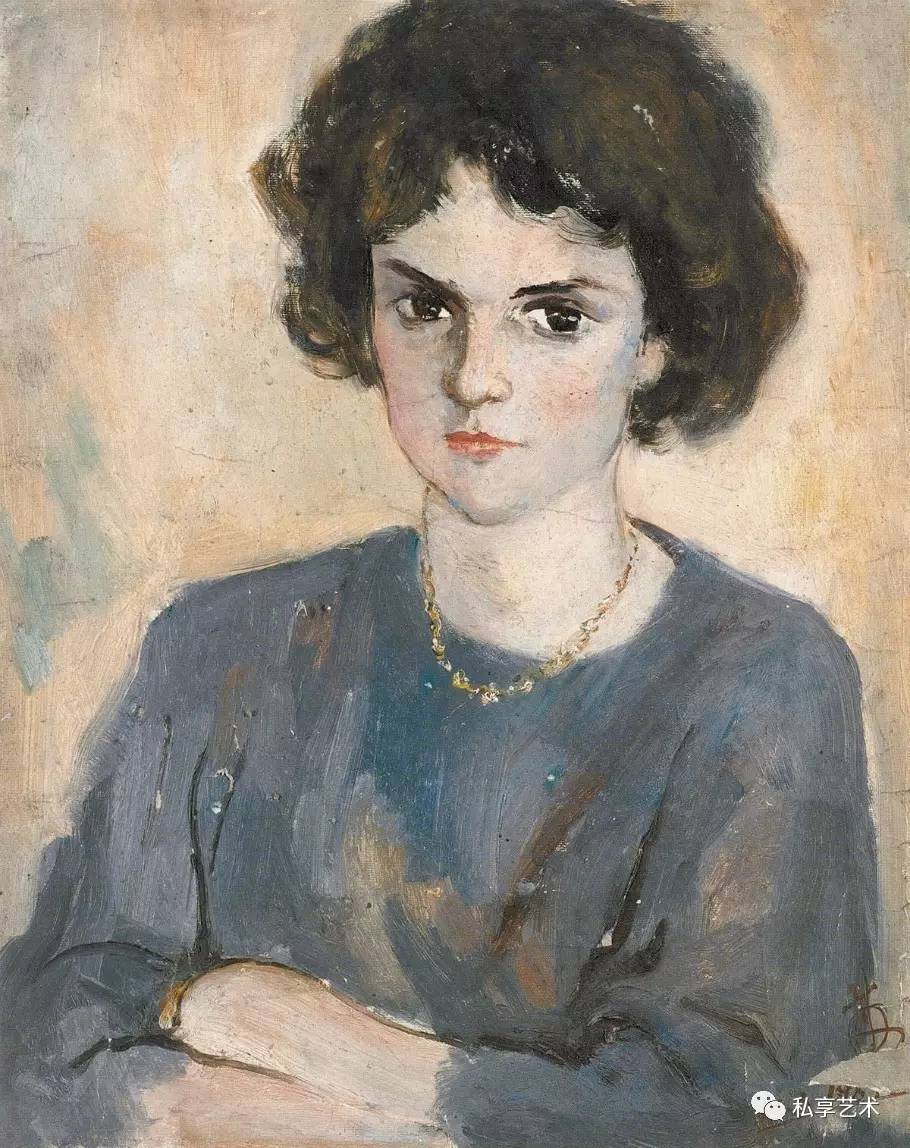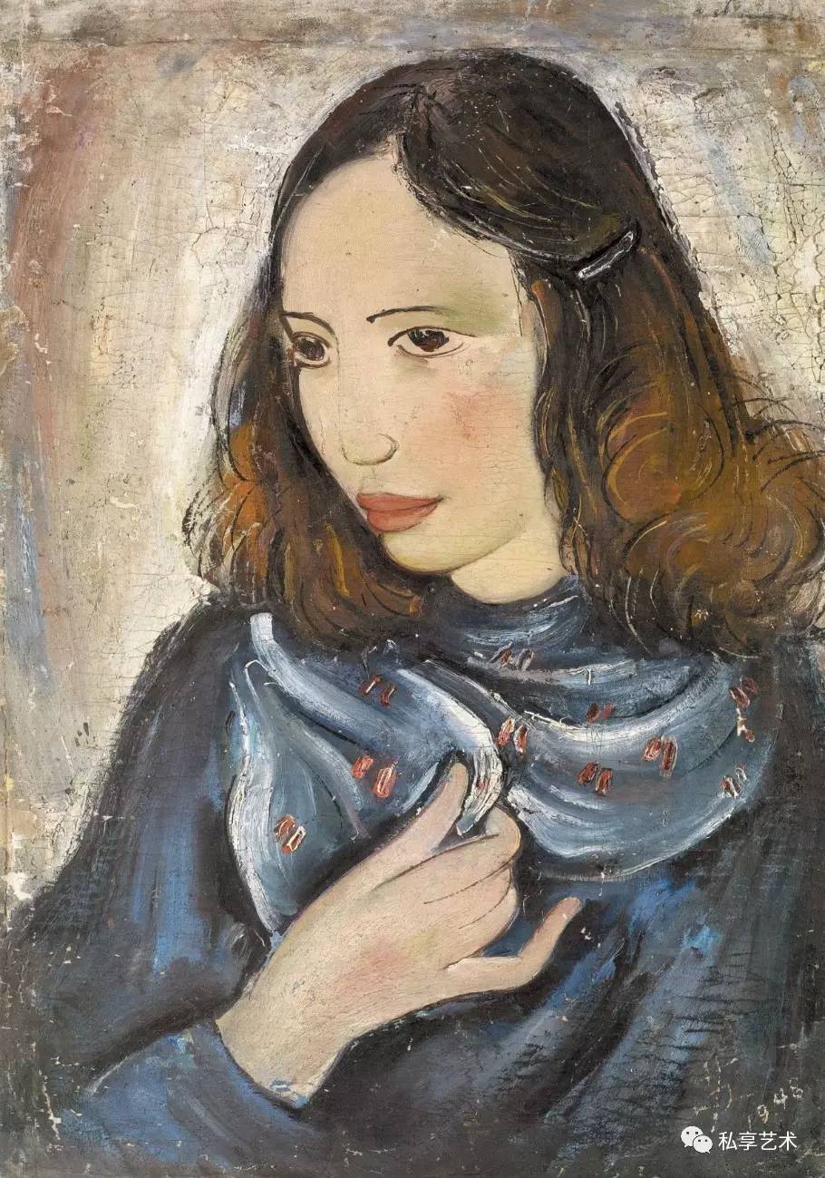 《蓝衣女像》至今已半个多世纪,画面上出现的龟裂和斑驳正是时间留下的痕迹;画中女青年衣饰的紫蓝和头发的金褐也失去了原有的光泽,但这并未减弱作品所具有的感染力。即使现在我们仍能从画面上感受到画家在创作时的那种挥洒自如,得心应手的自信状态。