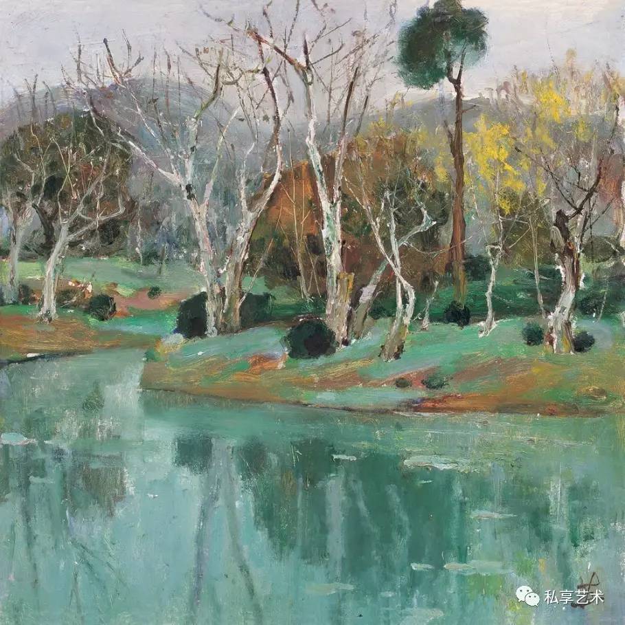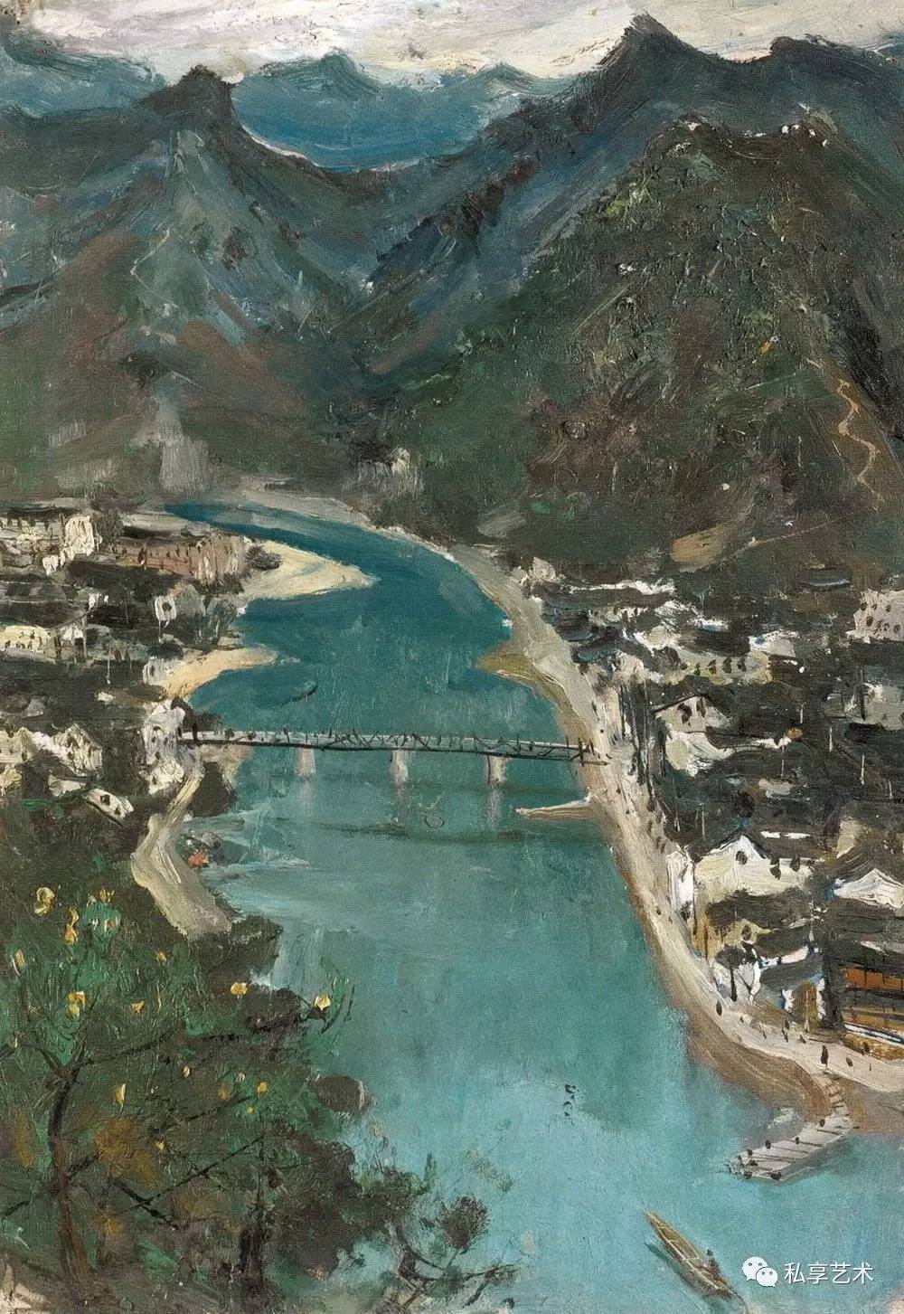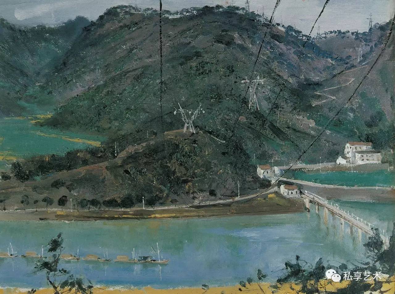 苏天赐 新安江畔 48×38cm 木板油画 1979年