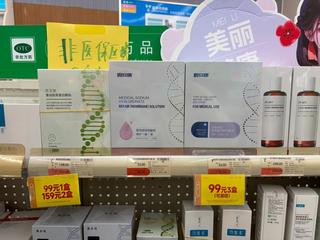 例如,在老百姓大药房,可复美重组胶原蛋白敷料售价594元4盒,另赠1盒涂抹式敷料,折合单片均价约29.7元;薇诺娜透明质酸修护贴敷料售价248元2盒,每盒6片,折合单片均价约20.6元。