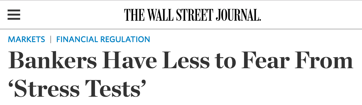 其中最大的改变在于取消了部分测试内容,从而减少了银行因为纯主观原因无法通过测试的风险。过去这部分所谓的定性考核让包括花旗银行、德意志银行在内的一些银行未能通过。目前美联储官员正在设想一套新的系统,只有当银行的资本水平低于美联储认为的健康水平时才会通不过测试。