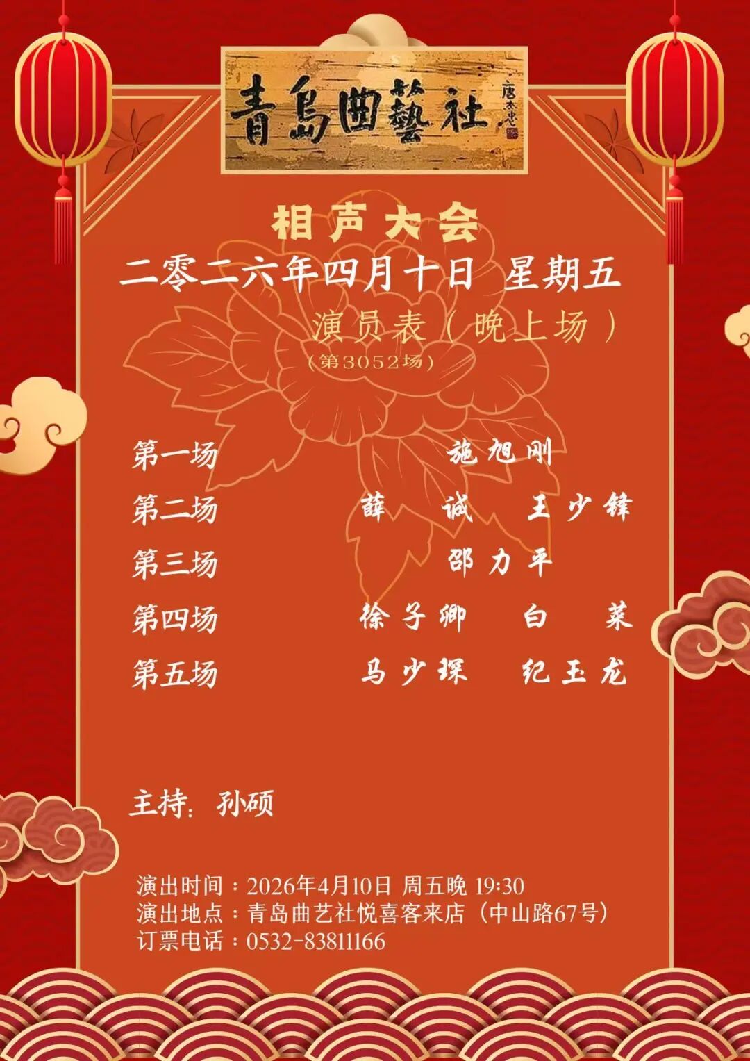 “青岛曲艺社”微信公众号在线购票