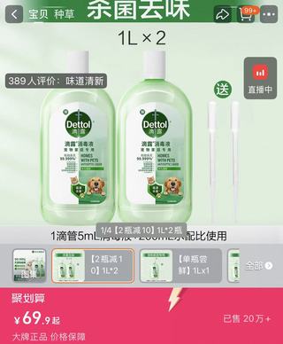 飞瓜数据的统计显示,滴露近期在宠物消毒液这一细分类目的表现颇为亮眼。随着“它经济”持续升温,养宠人群对宠物生活环境安全的需求日益细化。滴露切入这一场景,在内容端强化“宠物友好”“温和有效”等关键词,将品牌从“家庭清洁”延展至“宠物家庭清洁”这一更细分的场景赛道。