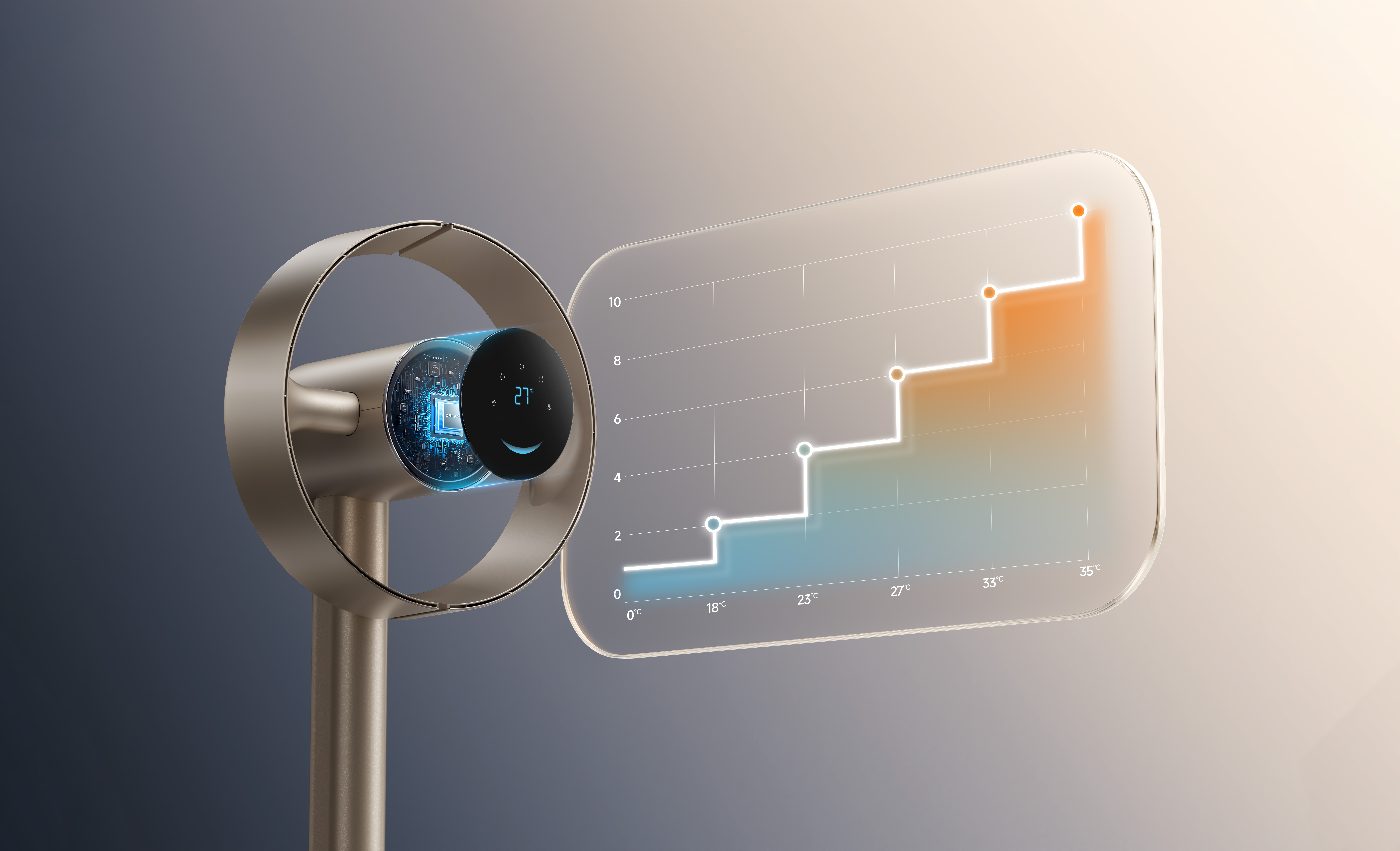 智能化体验的升级,是追觅MF10的另一大核心亮点。产品内置温度检测器和自研算法,实现风随温变的智慧无感体验,无需手动干预,一旦检测到环境温度变化,风扇便主动调节风速,让风感更贴合人体节律。其中,自研算法技术可在智能模式下根据环境温度自动匹配1-10档固定风速,风速调节平滑、可预测且不频繁跳变,精准维持恒舒体感。