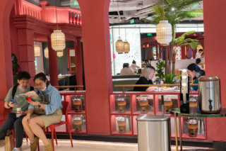 喜茶上海丰盛里lab店的限定饮品“岩兰·崇明米酿”,将崇明米酿融入茶底与云顶,把在地风味做出高级感。