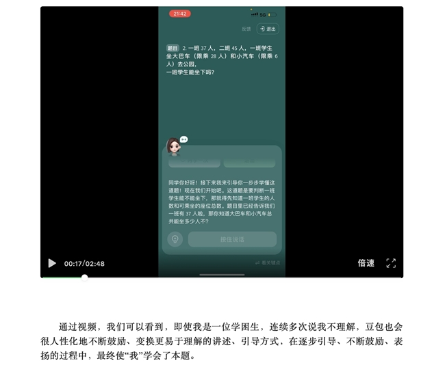 立羽是一名00后,平时喜欢探索新事物,包括各类AI工具。他常用豆包辅助备课,特别是PPT生成功能,能够上传图片附件进行生成,在教学过程中大大提高了工作效率。他也观察到很多家长在家庭辅导上的无力。很多家长受自身知识储备、课堂教学方法认知差异等限制,无法准确解答题目,传统搜题软件大多直接给出最终答案,难以培养创新思维。