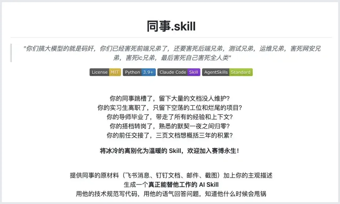 许多人说“同事.Skill”让离职同事实现了赛博重生,扯什么淡呢,他们相当于开源了自己的“技能包”,却没拿到GitHub的赞助按钮。