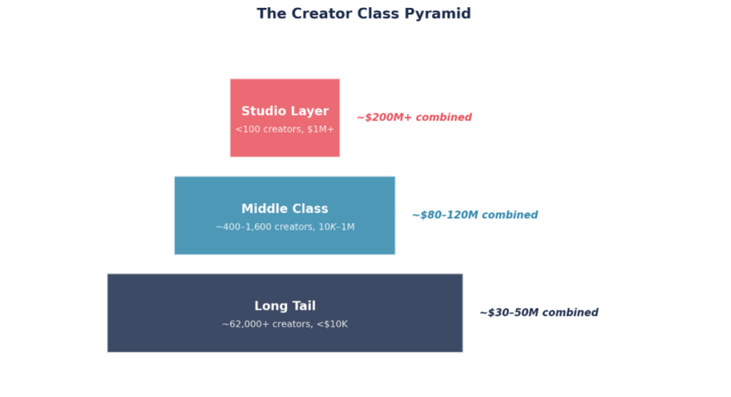 中层创作者(约400-1600个):年收入在1万至100万美元之间