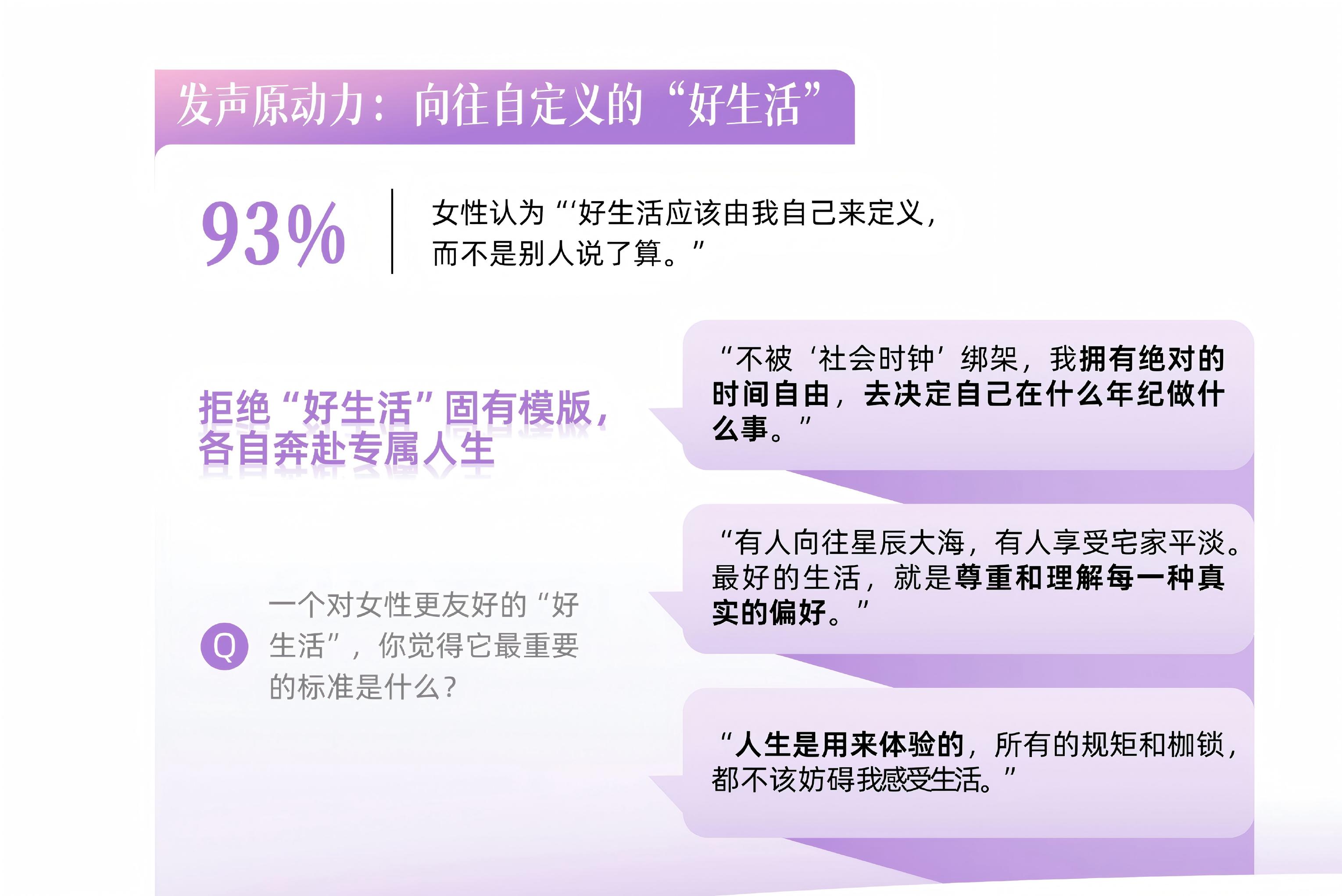 女性发声的原动力,是对自定义好生活的坚定向往 —— 拒绝外界既定的人生模板,不被社会时钟裹挟,尊重每一种真实的生活选择,以自我感受为核心奔赴理想人生。