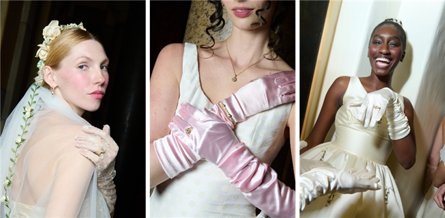 4月8日晚,在 Tanner Fletcher倾力打造的婚纱时装秀场上,沙漠钻石闪耀亮相。模特们佩戴Artifex Bride系列作品——订婚戒指、雕刻网球手链、圈形耳环及吊坠项链——穿行于圣公会圣巴多罗买堂教堂的光影之间。这些作品不仅淋漓尽致地展现了Kindred标志性的手工镌刻技艺与深厚美学底蕴,更诠释了她对天然钻石与婚嫁需求的独特见地:将源自天然、温暖色调的沙漠钻石,与古董老矿式切割的廓形灵感融为一体,打造“可以佩戴一生,而非仅限于婚礼当日”的珠宝。这一理念恰好呼应了当代新娘的愿望,她们渴望拥有一件超越婚礼本身、值得长久珍藏与传承的配饰。