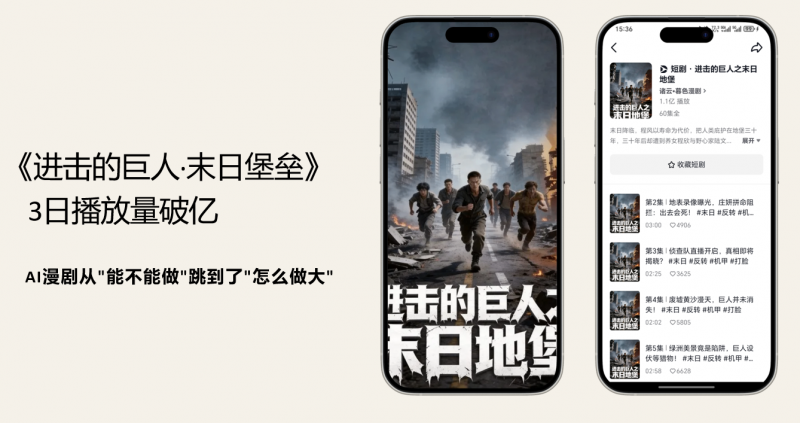 而绘梦工坊的工业化创作能力,早已在市场中得到了实打实的爆款验证 —— 近期全网刷屏的现象级 AI 漫剧《进击的巨人之末日地堡》,正是基于绘梦工坊 AI 工具链完成全流程制作,作品上线仅 3 日播放量便强势破亿,成为 2026 年漫剧赛道的标杆级作品。这部作品的诞生,彻底打破了 “AI 做不出高热度、高口碑大 IP 漫剧” 的行业偏见:从剧本分镜智能拆解、角色一致性长期把控、末日机甲场景批量生成,到数十集内容的稳定工业化量产,全程依托绘梦工坊的可控化 AI 创作体系完成,不仅将单集制作成本压缩至百元内,更将原本需要半个月的制作周期缩短至 3 天,真正实现了 “低成本、高效率、高爆款率” 的创作闭环,也让行业看到了 AI 工具与优质内容结合的巨大潜力。