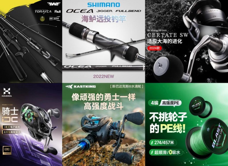 渔具方面,美夏猎魂路亚竿握感舒适,混碳一体把手设计,灵敏度高,轻量又结实;SHIMANO禧玛诺路亚竿反弹性好,久钓不累,对抗金枪鱼这类大鱼也适配;达亿瓦CERTATE SW鱼线轮机身强韧,硬铝齿轮收线顺滑,防水耐用,出海更放心;哈斯达骑士dc水滴轮搭载三大系统模式,新手、竞技玩家都能轻松上手,抛投更自由、更稳定;kastking卡斯丁斯巴达3水滴轮抗形变、耐拉扯,创新出线口设计还能减少炸线烦恼;汉鼎4编pe鱼线编织紧密,横截面圆滑切水性好,抛投过程更顺畅,结实耐磨不易断,降低跑鱼概率。
