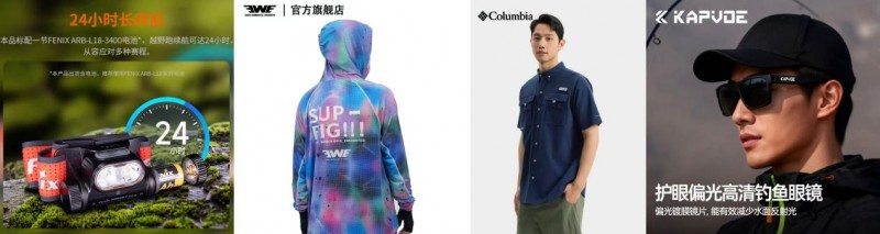 除渔具外,其他配套垂钓装备也必不可少。菲尼克斯 HM系列头灯小巧轻便,亮度达240流明,是夜晚垂钓的必备;美夏26新款渐变色钓鱼防晒服,宽松轻盈,面料凉感防晒,透气速干,夏天长时间户外垂钓穿着也舒服;Columbia 哥伦比亚户外防晒运动衬衫舒适透气,下摆特设隐藏小网袋,可随手收纳小配件或鱼饵,实用又便捷;卡普沃钓鱼专用太阳镜可有效弱化水面反光,让水下视野通透清晰,还能有效阻挡紫外线,冬夏垂钓都能安心护眼。