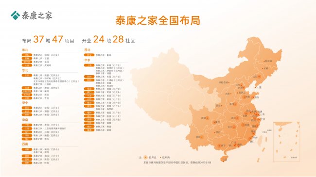 作为国家大民生工程核心骨干企业,泰康自2007年开始深耕养老产业,历经近20年的探索与实践,泰康之家目前已在全国37个城市布局了47个养老项目,其中24城28家社区开业,服务在住长辈已超2.2万人。