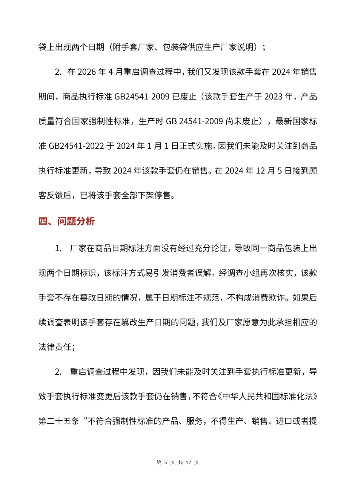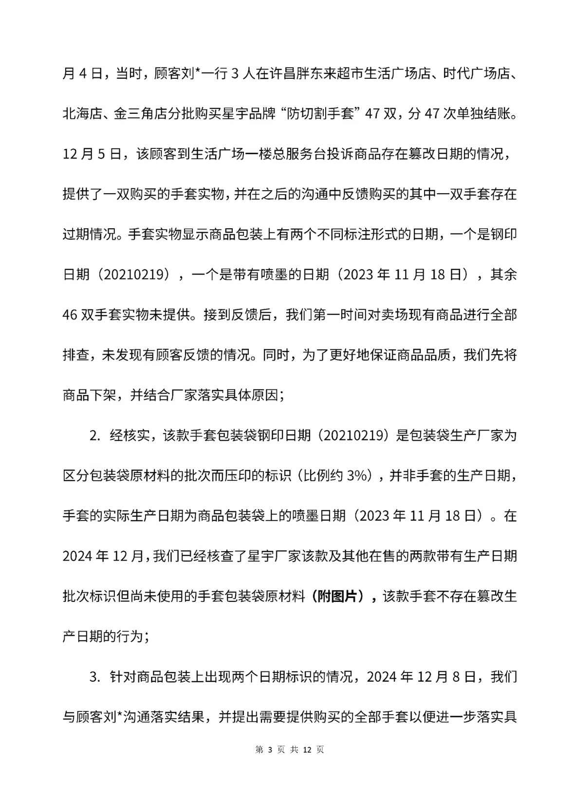 4月18日,胖东来发布《关于王海反馈胖东来销售星宇品牌“防切割手套”篡改日期指控的调查报告》。报告显示,经专项组重启调查,举报所称的篡改日期事实不成立,但该产品存在执行标准失效及日期标注不规范问题,不存在消费欺诈。胖东来决定给予投诉顾客1万元奖励。