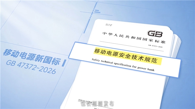 随着《移动电源安全技术规范》(GB 47372-2026)强制性国家标准正式发布,标志着我国移动电源行业迈入 “全链路保障” 的全新发展阶段。