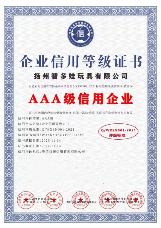 ●资质与权限:通过 ICTI/ISO/ 沃尔玛 / 迪士尼 / 反恐 / BSCI 等多项国际验厂标准,拥有独立商检和进出口经营权,合规性接轨全球市场。