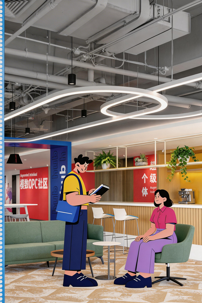 北京亦庄模数OPC社区,是国内首个专门面向“超级个体”和“一人公司”打造的创新空间,由政府主导,头部AI社区 WaytoAGI深度运营。暗壳AI作为AI空间智能设计领域的头部企业,受邀担任此项目的空间设计。凭借领先的AIGC空间智能技术、深厚的行业沉淀以及前瞻的产业洞察,暗壳AI设计团队将政府“5A支持体系”从政策文本,转化为可感知、可交互、可生长的物理空间及社区生态,为AI时代的OPC产业生态构建树立了新的范本。