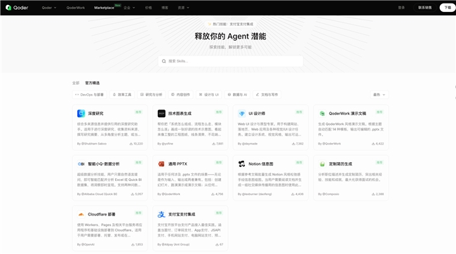 2. 前往 Qoder Marketplace 搜索并安装「支付宝支付集成」skill。