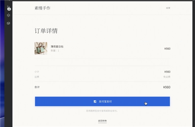 最近,她用 Qoder 和支付宝支付集成 Skill 完成了整个过程。她在 Qoder 的对话框里输入了一句话:「创建一个手作编织包的独立电商站」,Qoder 就帮助她快速搭建起独立电商站并接入了支付功能。跑通测试链路后,她申请开通了支付产品,并通过Qoder把网站部署到服务器,发布到公网。当晚,小曼的第一笔订单就通过支付宝到账了。