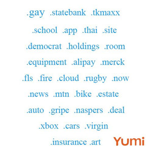另外,品牌企业还可将自己的品牌关键词申请成为顶级后缀,如新浪的.SINA和.WEIBO,百度的.BAIDU,阿里巴巴的.ALIBABA .TAOBAO .ALIPAY .TMALL等。