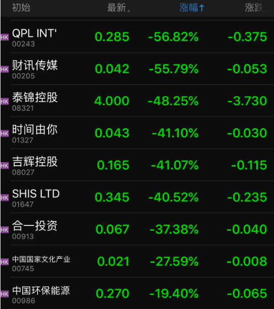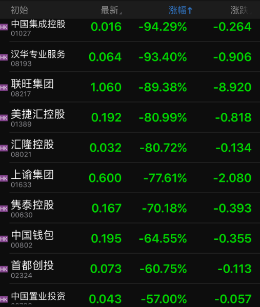 此外,市值不足1亿港元的中国投融资(01226.HK)最大跌幅达88%,创下该股2002年上市以来最大跌幅;首都创投(02324.HK)最大跌幅为83%,创其2003年上市以来最大跌幅;中国置业投资(00736.HK)最大跌幅为89%,创下其1991年上市以来最大跌幅。