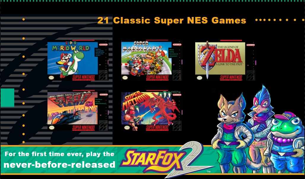 其中,最值得注意的游戏就是美版和日版都将内置的《星际火狐2》。这款游戏最初计划登陆SNES平台,但在1995年却因为某些原因被任天堂取消。所以,这是一款时隔20年首次出现在玩家视野中的“老游戏”。