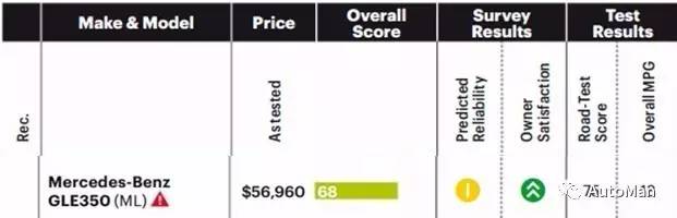 从这里开始,就没有推荐的小勾勾了,各位车主们要坚强哈。奔驰GLE350的内饰,不管是豪华性还是舒适度来讲,都没的说,从车主满意度上就能看出来,最好的评价大绿圈。吐槽最多的是中控不是很好用,娱乐功能让大家略有失望。可靠性也只给了及格档。