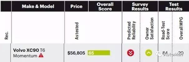 沃尔沃排在这里真有点不可思议,但确实没错,这不是安全榜单,而是综合评价。