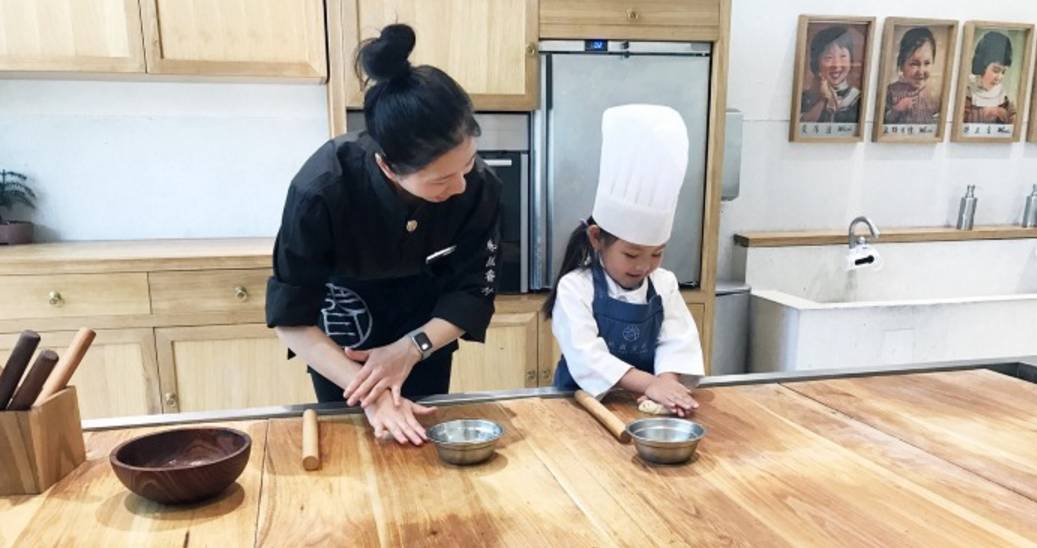 与多数餐厅临时把店内区域改造成一个活动场所不同,桃园眷村旗下的小眷村以店中店的形式长期存在。小眷村主要为小朋友们提供一次 60 分钟左右的中式传统美食 DIY 课程,包括固定的制作豆浆、烧饼的课程,和根据时令更新的课程,比如清明时制作青团。