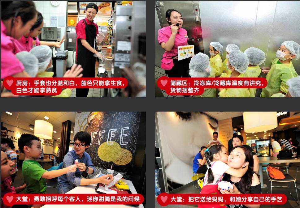 麦当劳 2015 年推出麦麦体验营,这是一个针对 5 - 10 周岁的小朋友的职业体验活动。小朋友们摇身变成餐厅小当家,体验多个工作岗位。他们要巡视厨房、做汉堡、与顾客互动等,在活动结束后将获得“麦麦小当家”的证书。