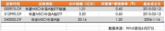 从投资规模来看,华安MSCI中国A股规模最大,为23.16亿元,华夏的两只基金合计规模约为4亿元。