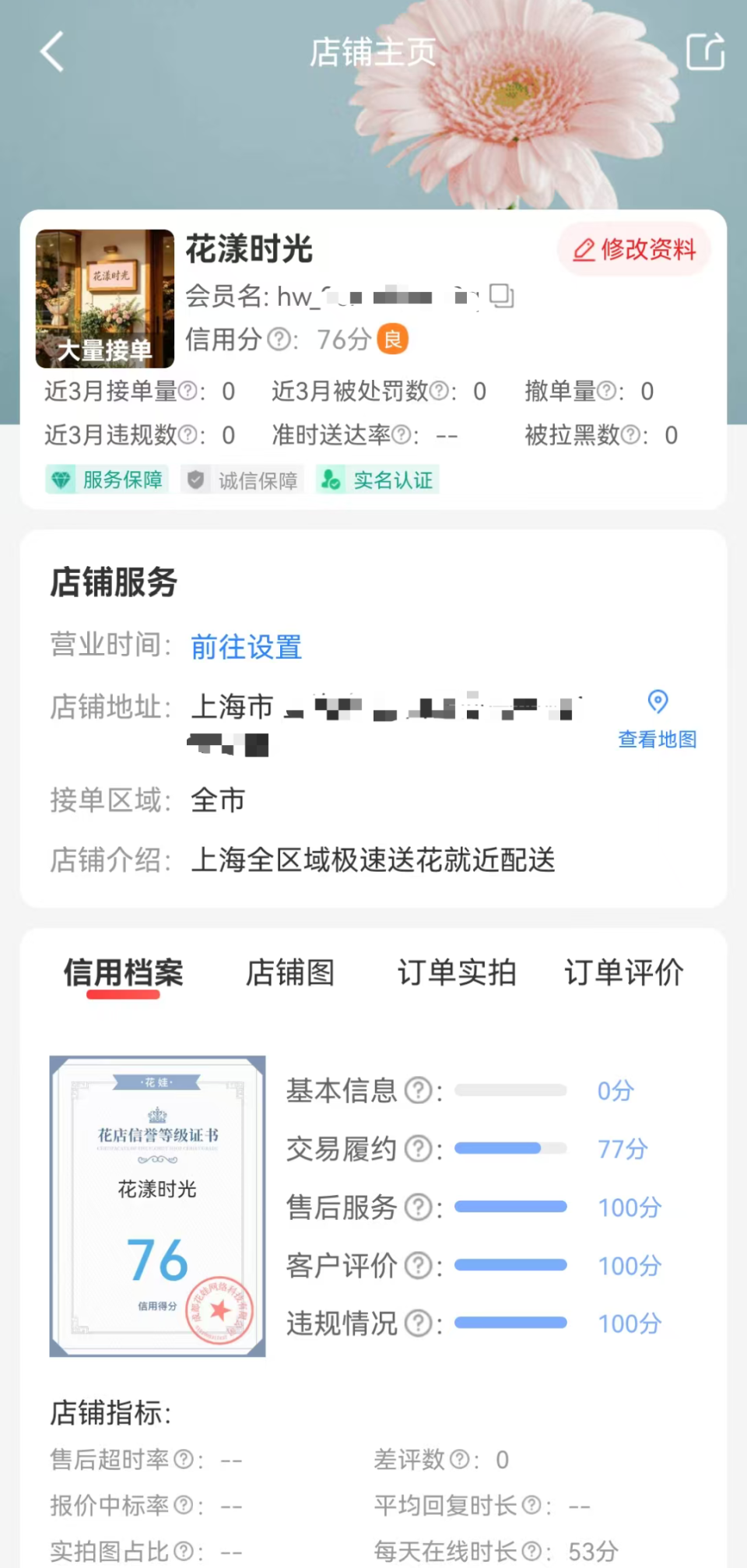 尽管有规定,但平台审查真的严格吗?记者先用一个手机号注册了接单花店,然后用AI生成的花店照片和名称上架,再随意输入一个地址,输入身份证号,缴纳99元~2000元不等的保证金就能成为接单方,在抢单池内抢单,全程无须提交营业执照。