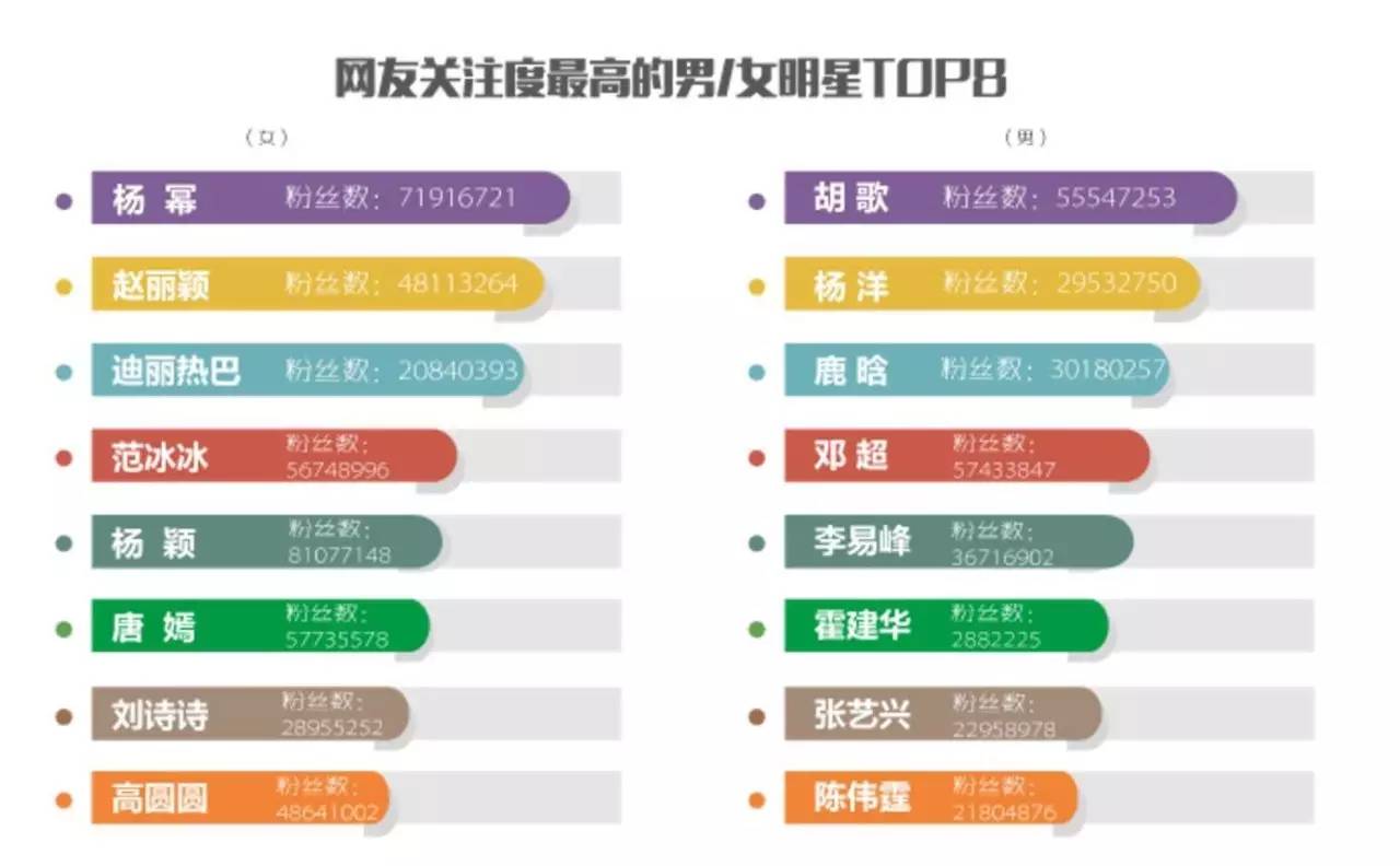 在腾讯时尚今年4月进行的一次名叫《爱豆代言大牌,你会买单吗?》的问卷调查中,网友票选出关注度最高的男明星是胡歌,女明星就是杨幂。
