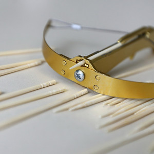 “牙签弩”根据质地的不同分为金属或塑料两种,外形如同兵器弩,个头只有巴掌大,可以将牙签当做“箭”发射出去。“牙签弩”个头虽小,杀伤力却很大。无论在学校,还是在家中,学生们不断接到提醒:“千万不要玩牙签弩”。