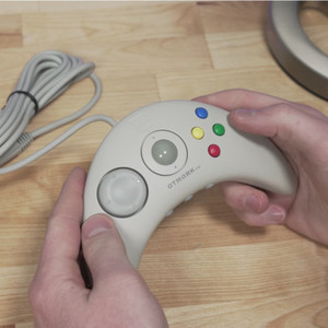 苹果还推出了无线版手柄——这在当时是很先进的。无线版手柄利用红外线技术与游戏主机相连。
