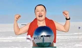 最经典的,莫过于2009年12月3日的早上5:28,还未减肥成功,体重尚在160多斤的郁亮,站在南极点,脱光了上衣,拍下了一张半裸照片。
