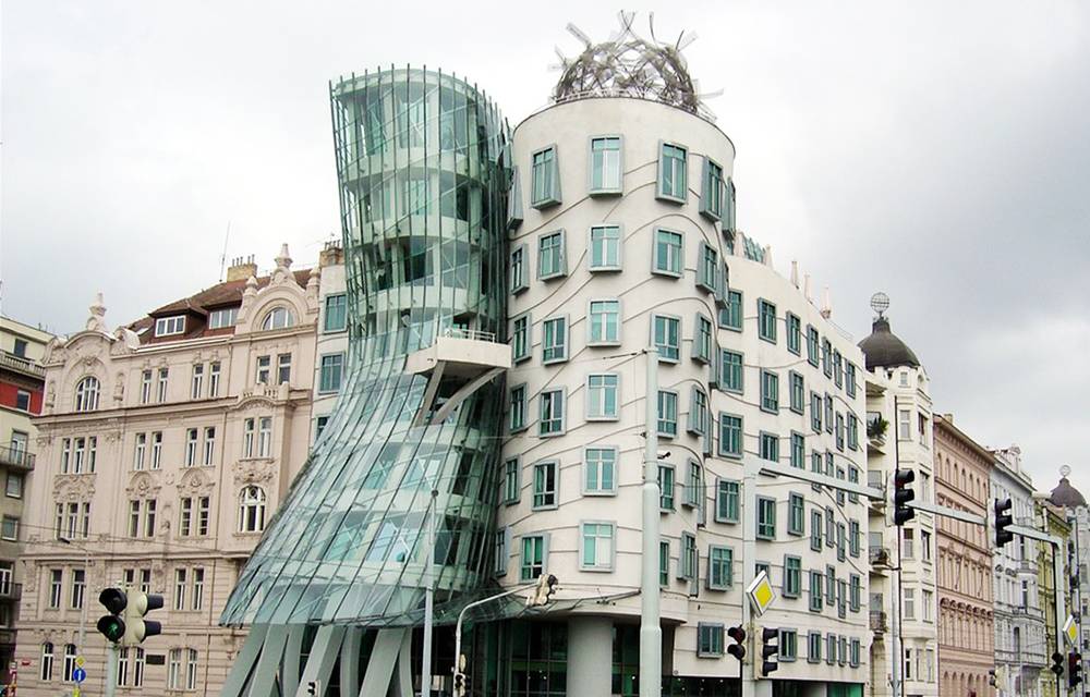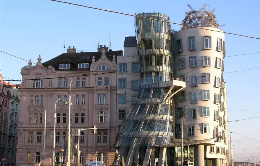 ▌设计灵感来源于传说中的舞蹈组合,建筑为的外观因其弯曲的轮廓犹如舞者的曲线而得名,其打破传统的造型引发了众多非议,如今这座建筑已成为布拉格一道亮丽的风景线。