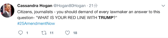在该视频发出后数小时,#25thAmendmentNow 的热门标签开始流行起来,目前仍然是个热门话题。