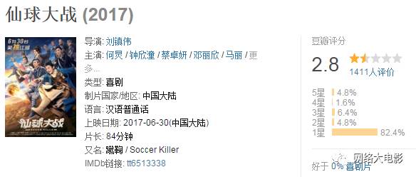 看到这个结果,只能说呵呵了。本片打破了近期上映国产电影的下限,已可以确定跻身2017年十大烂片之列,而且还会排名很靠前。