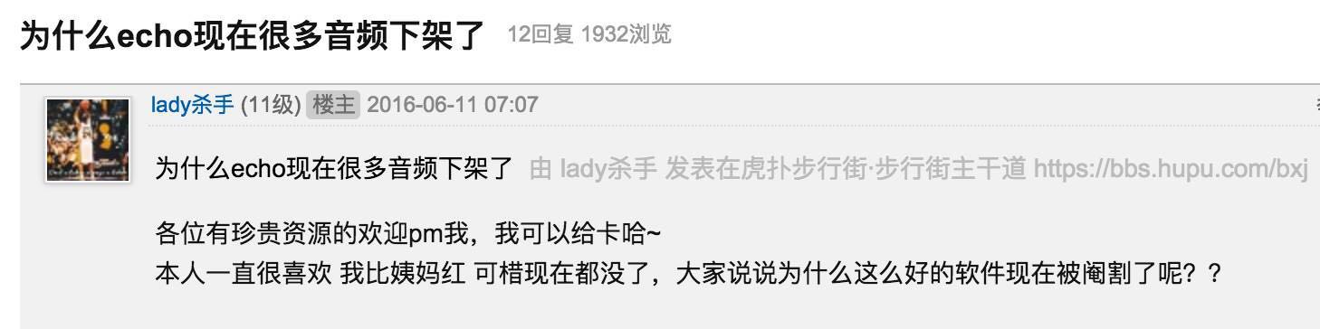但真正让网民兴奋的是Echo上逐渐涌现出以口唇音和剧情系见长的ASMR情色向主播,昵称为“我比姨妈红”的主播以持续性的情色系内容产出一度让Echo的ASMR版块热闹非凡,并在很大程度上推动了APP的下载量和品牌知名度。