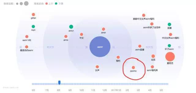 作为国内出现的第一条有关于ASMR的视频,它的出现在当时并没有带来太大的关注,而将ASMR的星星之火燎原国内的是一个名为「PPOMO」的韩国ASMR表演者,吸引了部分早期玩家。而用ASMR为关键字进行检索发现,同时期的百度指数中有关ASMR方面搜索相关度最高的词汇为「PPOMO」。