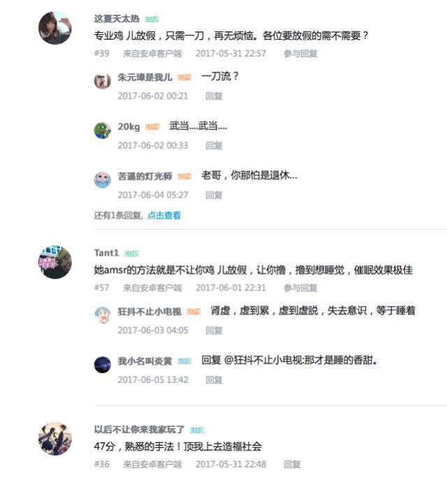 在这些主播房间的弹幕或者留言的尺度也大得令人乍舌,例如“想让她给我弟弟按摩”、“又要买肾宝,喝玛卡了”、“谁的ji儿都别想放假”,忽略直播内容容易让人产生置身草榴交流小黄片的错觉。