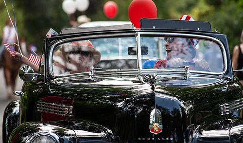 红、白、蓝色的气球、条幅装饰自然是少不了的,各个老爷车配上国旗色的背景,非常有感觉!星条旗元素的装饰伴手礼也是创意满分,不妨带两个回家作为纪念!