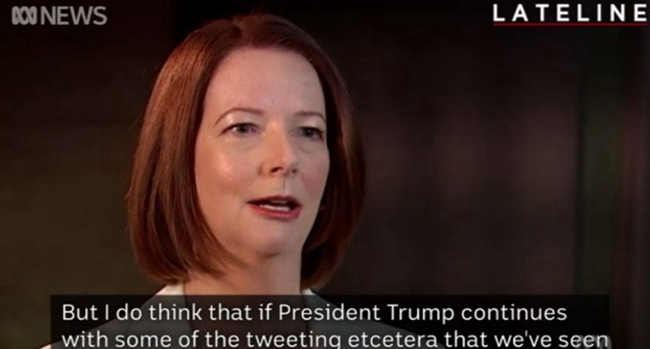 这是澳大利亚前总理朱莉娅·吉拉德7月3日在接受澳大利亚ABC电视台采访时表达的担忧。她强调这种担忧不是为了“侮辱”特朗普,而是一种“真正的担心”。
