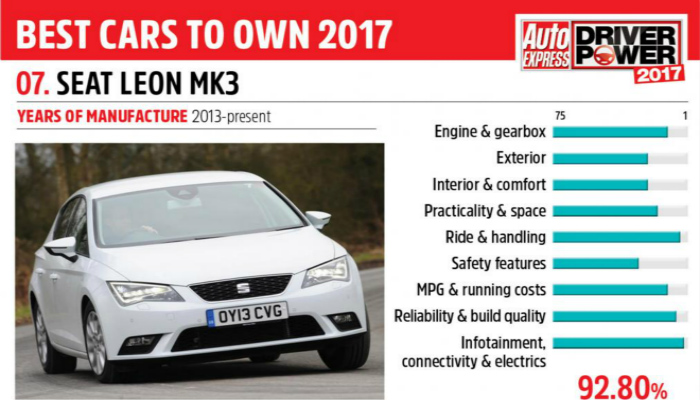 点评:似乎热爱驾驶这一条就足以让人购买一台Leon了。不过,它确实在驾驶舒适性上排名满意度第一。