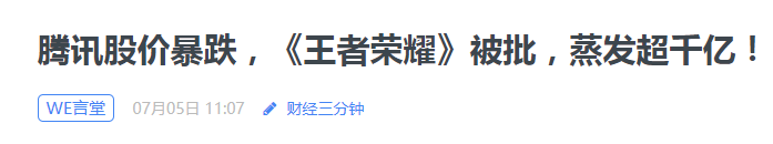 人民日报连着怼了几次王者荣耀,腾讯市值一天缩水千亿。。。