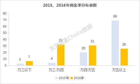“一些券商原来的佣金太高,我们打电话给原来券商调佣金,他们不肯调,只能开第二个了。有些券商实际佣金在万8以上,只是新开户都是万2.5,大量不明真相的用户贡献了高佣金。”同花顺相关业务负责人告诉全天候科技。东方财富Choice公布的数据显示,佣金比例介于万三-万四和万四-万五的券商相对集中