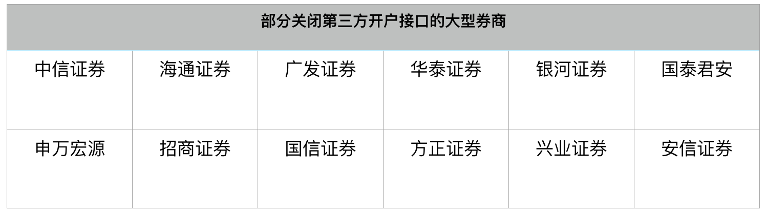 一些大型券商已经关闭了第三方客户端的开户接口,其中部分券商在2015年就已经终止了与第三方平台的合作