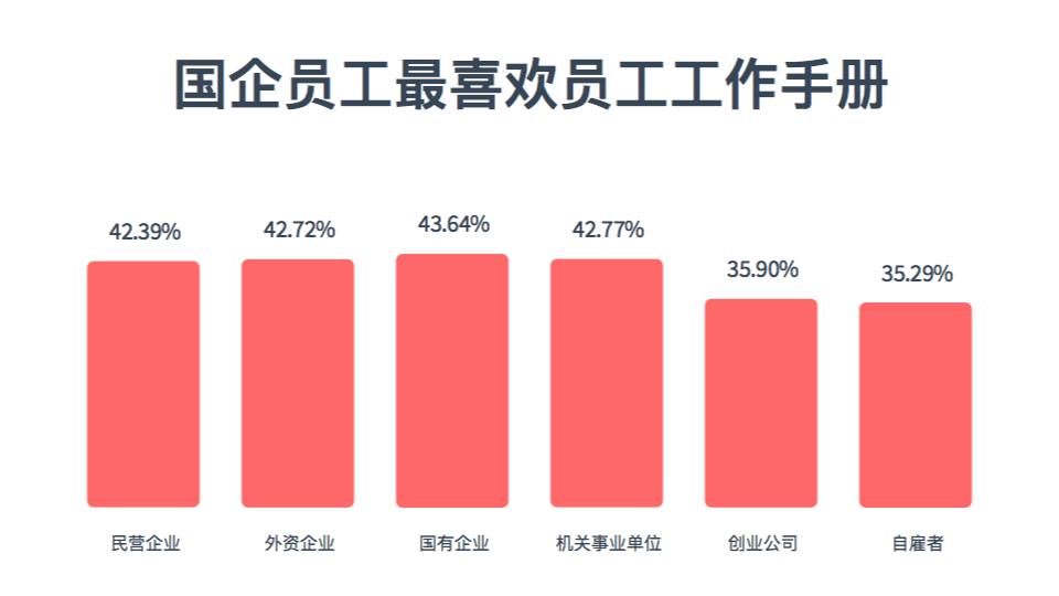 另外,国企员工、机关事业单位员工和民企员工是最喜欢员工工作手册的群体。
